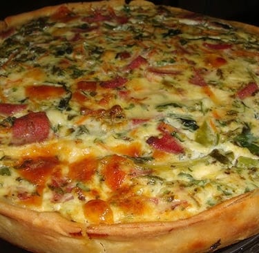 13 - To prepare the vegetable quiche: Roll out the dough on a flat surface lined with parchment paper using a rolling pin.