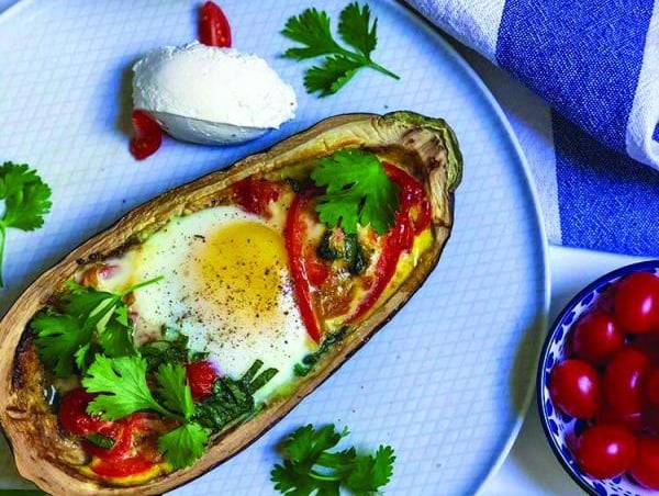 9. Arrange the eggplant halves in a baking dish and bake in a preheated oven at 180°C (350°F) for 10-15 minutes.